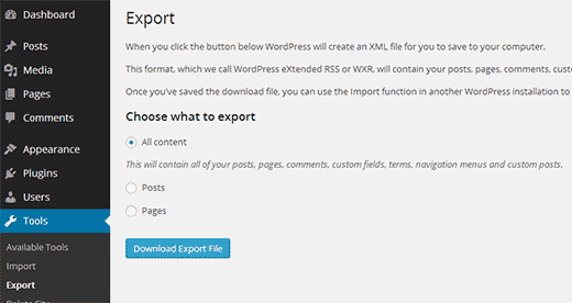 پس از انجام این مراحل وردپرس به شما یک فایل XML که در آن کلیه محتویات خود است به شما میدهد.پس از دانلود ، فایل را در یک جا از سیستم خود ذخیره کنید .